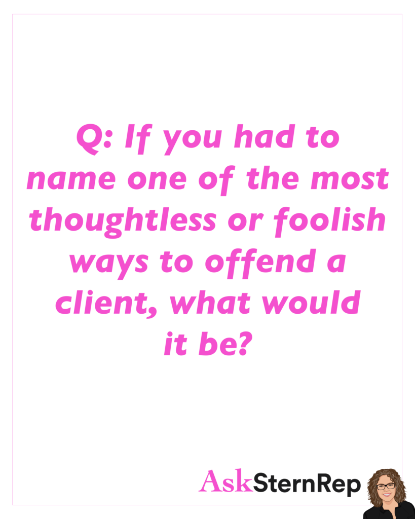 If you had to name one of the most thoughtless or foolish ways to offend a client, what would it be?